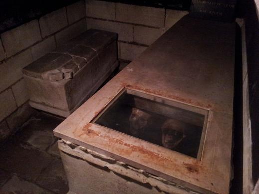 Caveau présentant les crâne présumés de Louis XI (à droite)