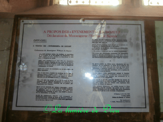 Cependant, le 24 juin 1985, Mgr Jean Badré, évêque de Bayeux et Lisieux, avait déclaré ne pas reconnaître comme sanctuaire le domaine de Dozulé.