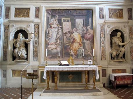 L'autel de la chapelle des peintres, avec au centre Saint Luc peignant la Vierge de Vasari
