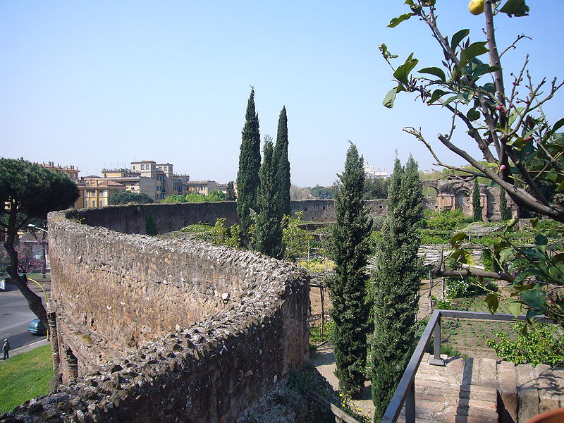 L'amphithéâtre Castrense, construit vers le IIe ou IIIe siècle, est utilisé comme jardin annexe de la basilique Sainte-Croix-de-Jérusalem.