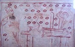 Une fresque du XVe siècle supposée montrant les tortures de saint Elme, dans l'église Marie de Båstad en Suède