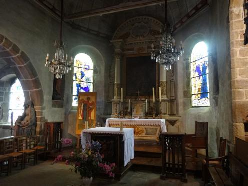 Dans l'abside, l'autel avec le tabernacle et le retable à colonnes datent du XVIIe siècle.