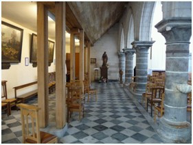 nef comprend deux rangées de cinq colonnes en pierre bleue de Tournai
