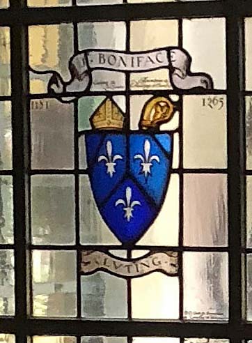 Saint Boniface ; vitrail de l'église Saint-Pierre, à Uccle (Bruxelles)