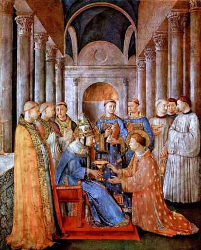 La Consécration de saint Laurent comme diacre, Fra Angelico, série La Vie de saint Laurent, fresques de la chapelle Nicoline du Vatican (I)