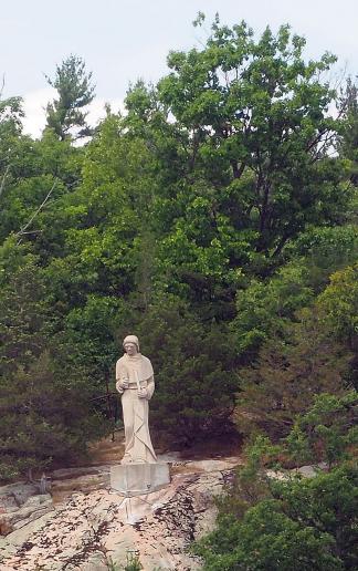 Une statue de Saint Laurent est installée le long du fleuve Saint-Laurent, dans la région des Mille-Isles (Ontario et État de New York).