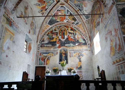 Les peintures du chœur, réalisées à la détrempe, sont en général attribuées, mais sans preuve, à partir des critères de style, à Giovanni Baleison.