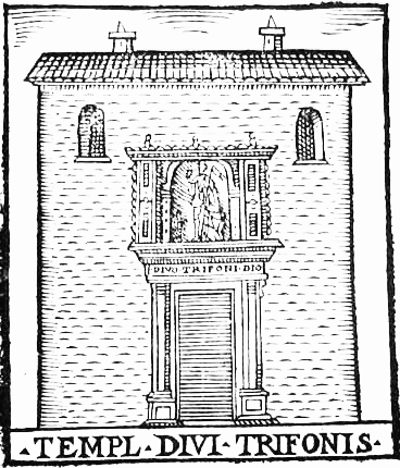 L'église est confiée aux Augustins par le pape Honorius et utilisée comme chapelle en 1287 ; elle est alors rebaptisée Santi Trifone éd Agostino (Saints Tryphone et Augustin) en l'honneur de saint Augustin d'Hippone.