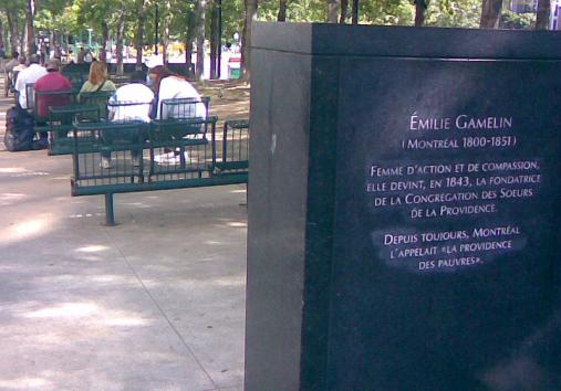 - Montréal honore depuis quelques années son nom, le square Berri ayant été rebaptisé la place Émilie-Gamelin (1995). Elle est située entre les rues Berri et Saint-Hubert et fait face à la rue Sainte-Catherine, occupant l'ancien emplacement de l'Asile de la Providence (détruit en 1963). Déjà à un endroit très central de Montréal et voisin de l'UQAM, la place Émilie-Gamelin est devenue célèbre en 2012 en tant que point de départ d'une grande partie des manifestations du Printemps érable.
