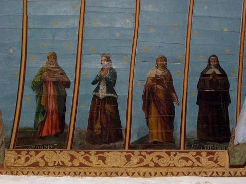 - Une fresque du XIXe siècle accompagnant saint Malo, saint Melaine, saint Judicaël, saint Maurice et sainte Jeanne d'Arc au-dessus d'une chapelle latérale de l'église Saint-Pierre et Saint-Paul de Pléneuf-Val-André contenant les fonts baptismaux.