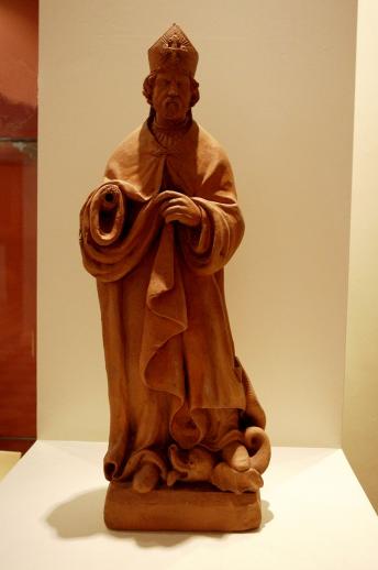 Statuette en bronze de saint Domitien (1597), élément de la partie supérieure de la fontaine Li Bassinia, Huy, Belgique