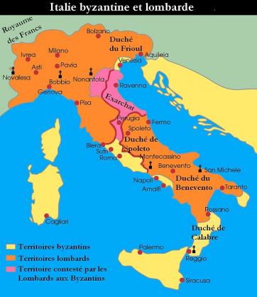 Carte de l'Italie byzantine et lombarde