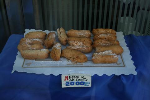 Pâtisserie traditionnelle espagnole appelée huesos de san Expedito (es), c’est-à-dire « ossements de saint Expédit »