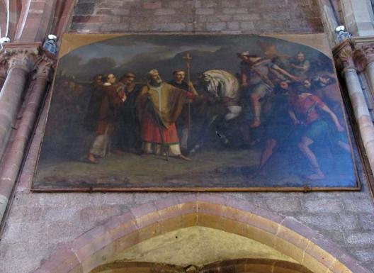 St-Germain barrant la route à Eocharich, tableau (1836), église gothique St-Georges, Sélestat (Bas-Rhin, Alsace)