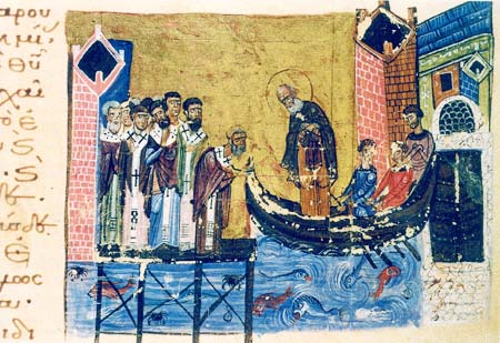 Représentation du XIe siècle de Grégoire de Nazianze arrivant à Constantinople