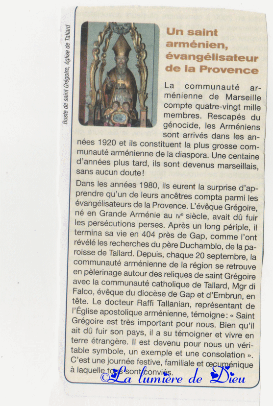 Grégoire de Tallard serait venu de Grande Arménie en Provence et serait mort à Tallard.
