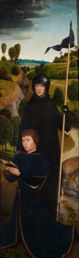 thumbnail|upright|right|Guillaume de Maleval en protecteur de la famille Moreel. Triptyque de Moreel. Hans Memling, 1484