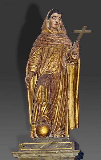 Attributs : Le vêtement dominicain, la coupe, le crucifix.