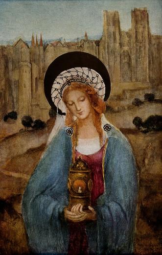 Sainte Gudule avec sa lanterne (illustration d'un graduel hollandais de 1494)