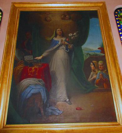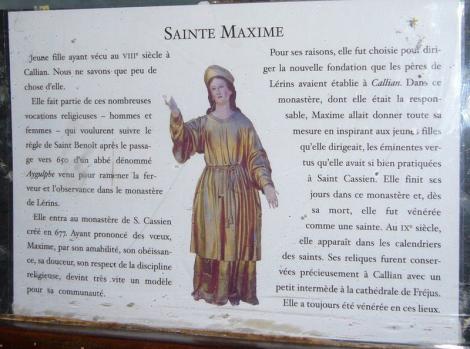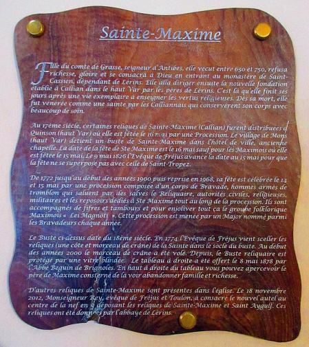Panneau sous le buste de sainte Maxime dans l'église de Callian