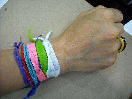 que l’on attache au poignet en faisant 3 nœuds correspondant à trois