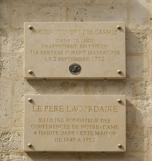 Plaque mémorielle, en souvenir des massacres de Septembre