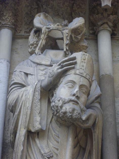 C'est du moins ce que rapporte sa légende, reproduite au tympan du portail des saints de la cathédrale de Reims.
