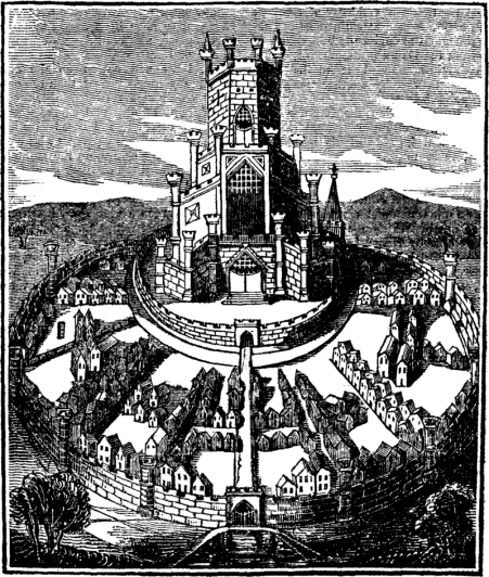 Estampe du Vieux Sarum au temps de son apogée