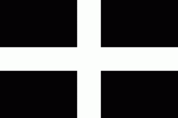 Le drapeau de Cornouailles est également appelé drapeau de saint Piran : il s'agit d'une croix blanche sur fond noir, les mêmes couleurs mais inversées que l'ancien drapeau breton, qui était une croix noire sur fond blanc.
