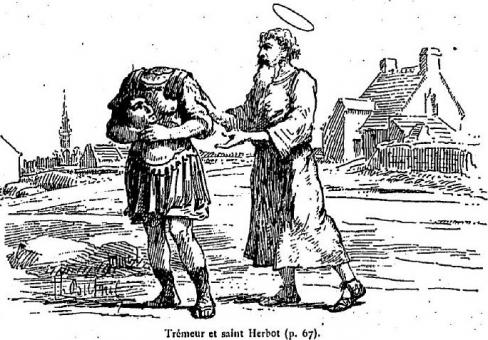 La rencontre entre saint Trémeur et saint Herbot 1 (dessin illustrant le conte "Trémeur ou l'homme sans tête")