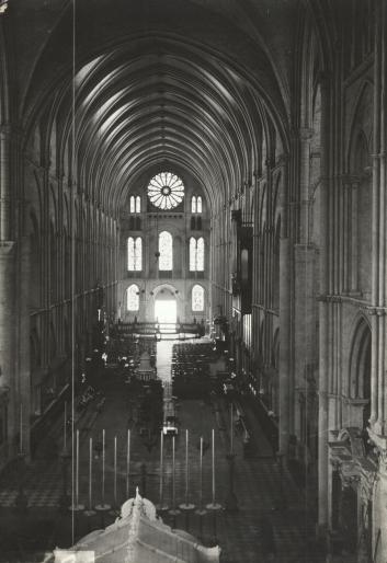 partir de la rose, celle des voûtes de la nef remplacées par de fausses