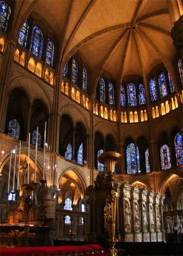 chapelles rayonnantes, remplace le chœur roman. De nombreux vitraux sont