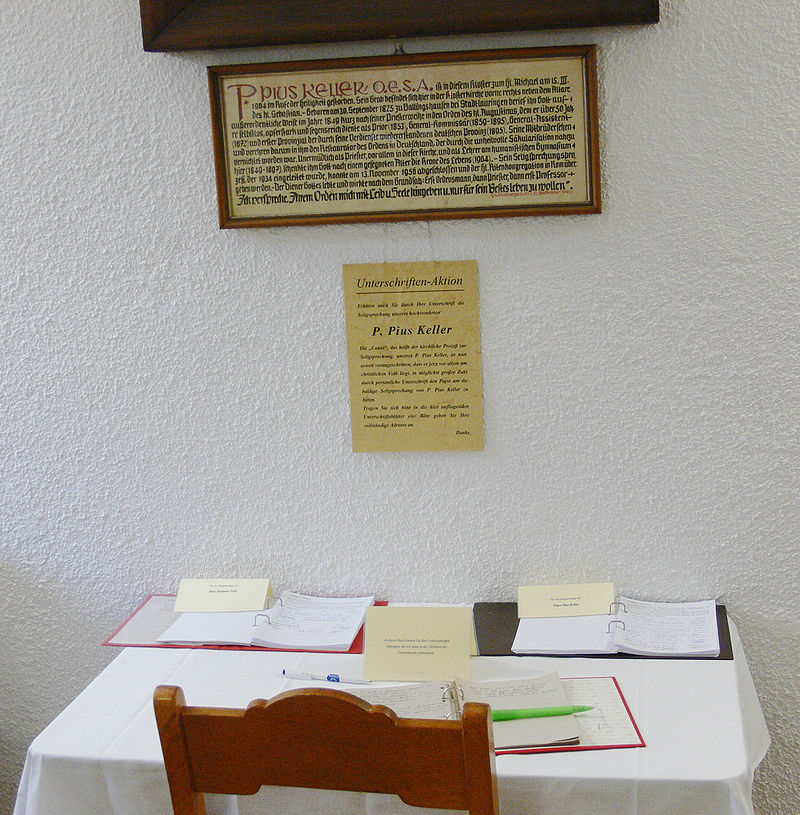 La cause de la béatification et de la canonisation de Pius Keller a commencé en 1934.
