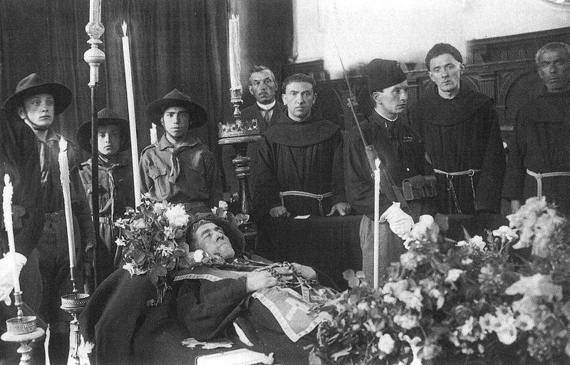 Ces derniers temps, il n'avait plus la force de monter les escaliers pour entrer dans sa cellule et s'endormit par terre, dans l'église, au pied du crucifix.