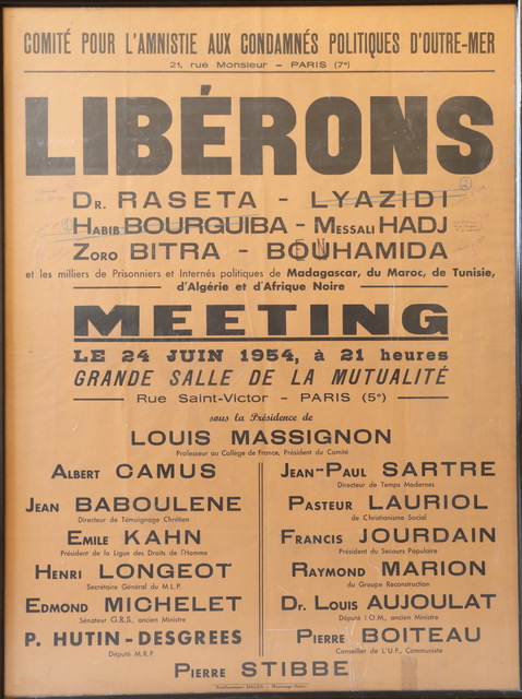 Meeting pour la libération des prisonniers et internés politiques de Madagascar, du Maroc, de Tunisie, d’Algérie et d’Afrique Noire, en présence d'Edmond Michelet, 24 juin 1954