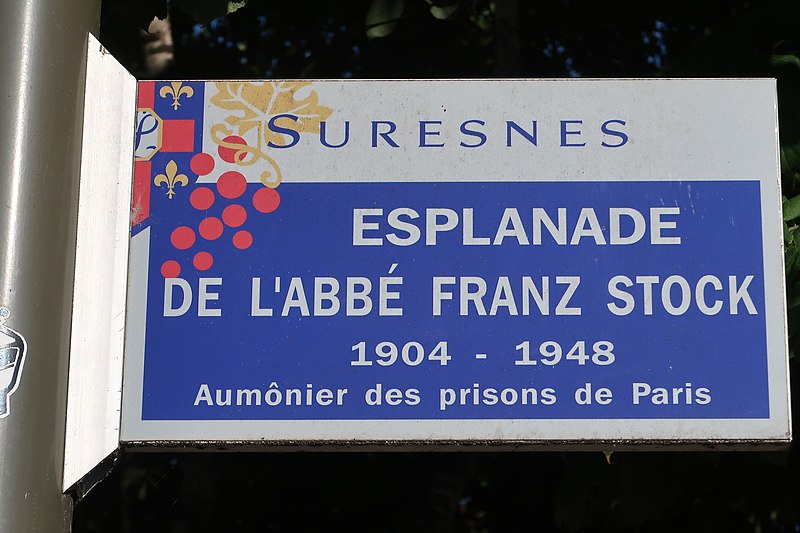 - Le nom de « Place de l’Abbé-Franz-Stock » est donné en septembre 1990 à l’esplanade devant le Mémorial de la France combattante du Mont Valérien à Suresnes.