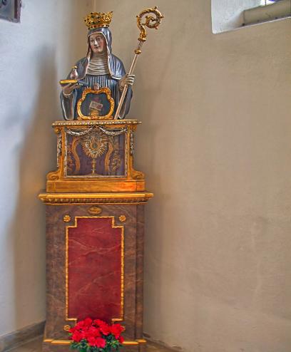Statue et reliquaire de sainte Walburge à l'église Saint-Pierre de Munich